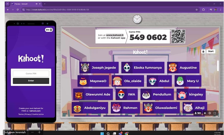 The training series for this editorial post had a combined audience of 280 audience with 131 coming from the Saturday live training and 149 from the Sunday live training. The week was packed with so many activities and the students were excited about the eventfulness of the week, especially with a mental refresher of what they had done in the previous week through an online quiz platform called “Kahoot”. Over 90 people joined the quiz, however, 3 winners were crowned. See pictures below.